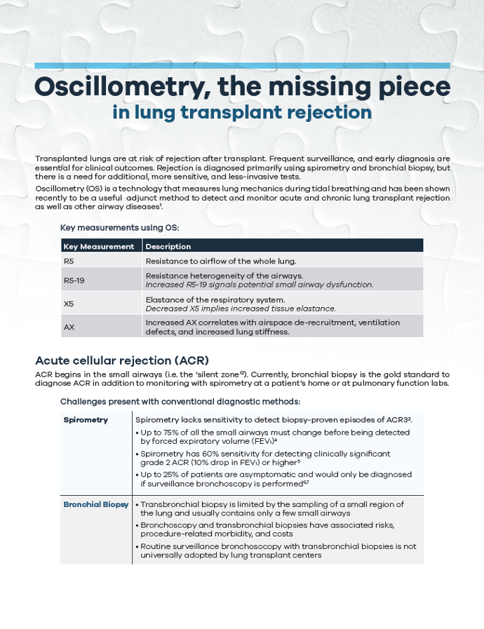 “ The data of Cho and colleagues support… the utility of OS as an essential adjunct to spirometry in [ACR] patients, particularly in centers that do not perform routine surveillance bronchoscopy with transbronchial biopsy.” Usmani et al. 2020